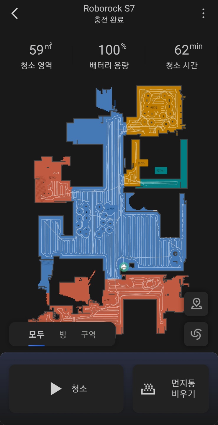 요즘은 예전과 달리 맵핑이란 기능이 있어서 아래와 같이 청소기가 한바퀴 돌면서