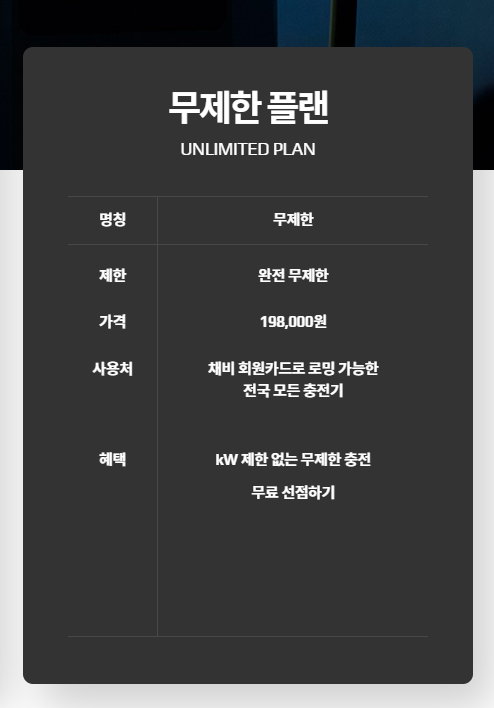 그리고 마지막으로 여러대의 전기차를 운영하면서 평소 주행거리가 많은 차량이라면 무제한 플랜이 있습니다.