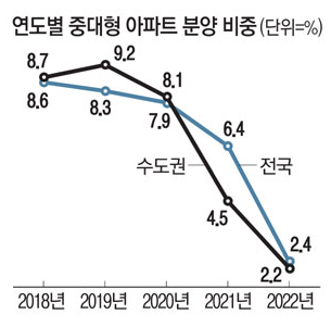 36. 과거 12%까지 차지하던 신축아파트의 중대형평수는 현재 2%대까지 떨어진 상태입니다.