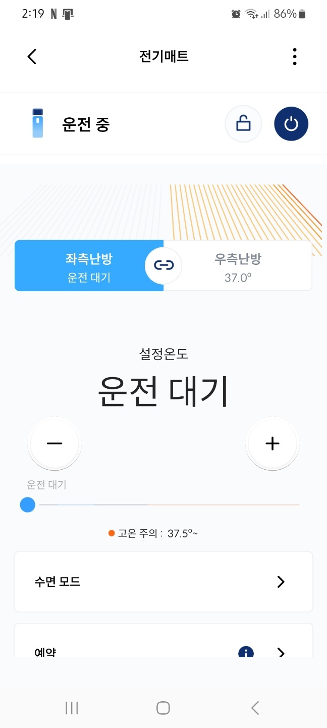 35도 정도로 설정했더니 따뜻한 정도였고, 38도 이상으로 올렸더니 뜨끈한 감이 있어서 가끔 몸 지지고 싶을 때도 충분한 성능인 거 같습니다.