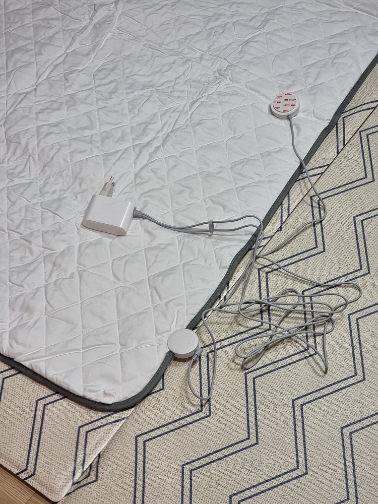 매트->리모컨->아답터->콘센트 순으로 선이 연결 되는데, 매트와 리모컨의 연결 부위가 발쪽에 붙어 있고, 리모컨의 선이 길지 않아 리모컨 조작을 하려면 자다 말고 일어나서 발쪽에 있는 리모컨을 조정을 해야 합니다.